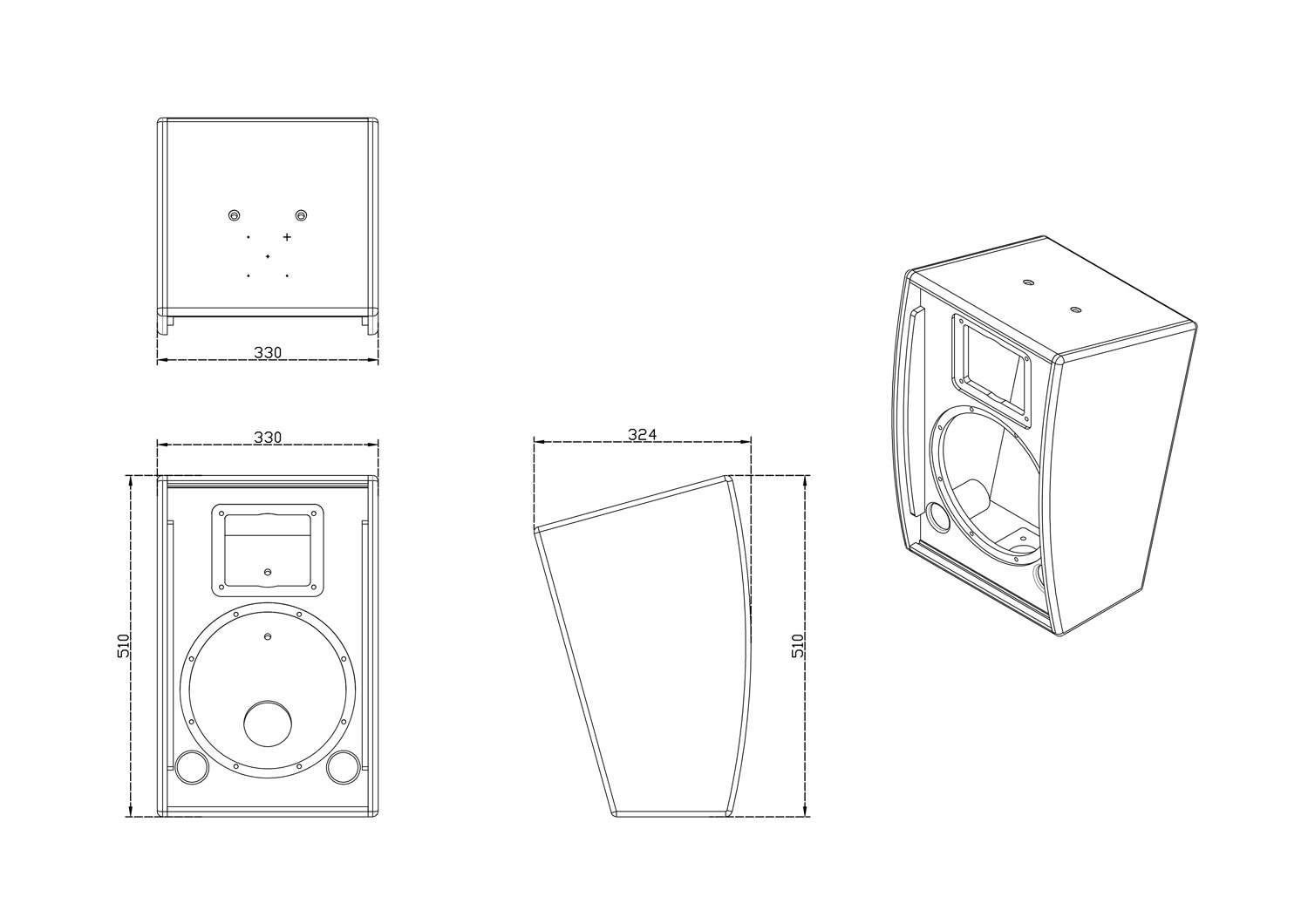 | 单元 Components | 1*10"LF+11"HF | 1*8"LF+11"HF | 1*6"LF+11"HF | 1*15"subwoofer |