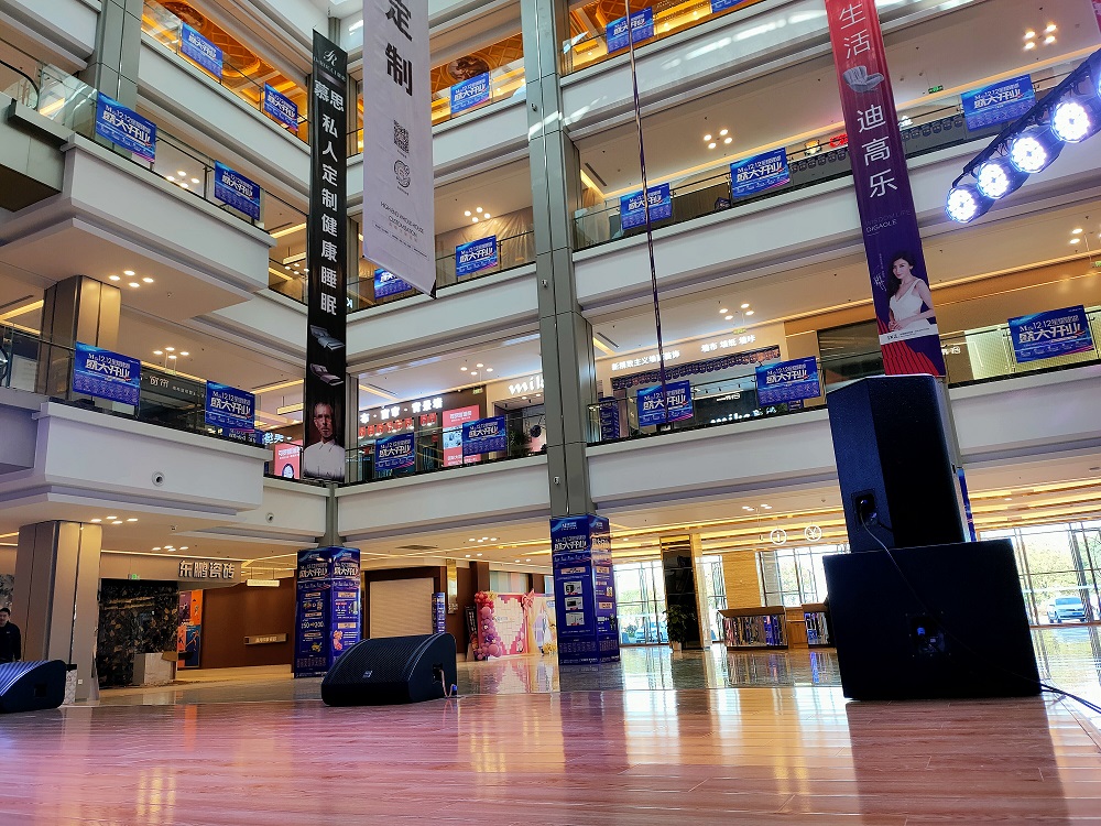 Red Star Macalline built-in activity demonstration hall, are used for Red Star Macalline shopping mall to hold large-scale activities to promote, the scene is decorated with a variety of activities rehearsal decorations and equipment, and activities at the scene of the much-anticipated Egle professional audio to help Red Star Macalline.