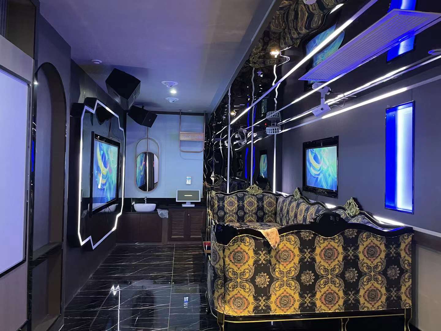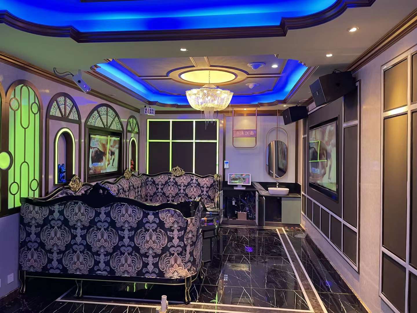 Shuimu Jiangnan leisure club has a high-end and fashionable environment that is elegant and comfortable. The venue uses high-end audio brand Egle Audio, which includes sound reinforcement for interior rooms and professional-level singing effects. It provides guests with a star-like treatment and experience, as well as a passionate and vibrant stage atmosphere, allowing guests to fully enjoy the joy and present their fashion and nobility.