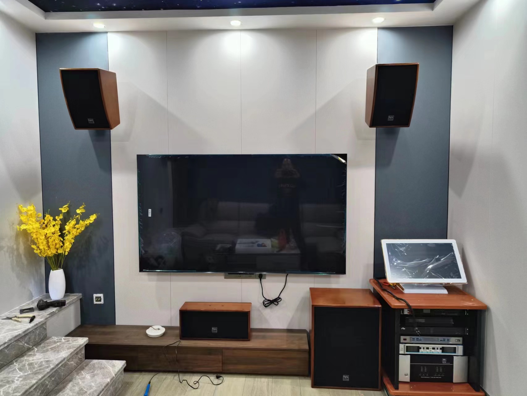 Home theater Series is located in Guangzhou, this series has entered into thousands of family, is an intelligent home theater, karaoke sound system, integrated home theater audio, audio and video media resource output, karaoke, Bluetooth audio, HiFi music, intelligent voice control and other functions. Perfect for family gatherings and holiday entertainment.