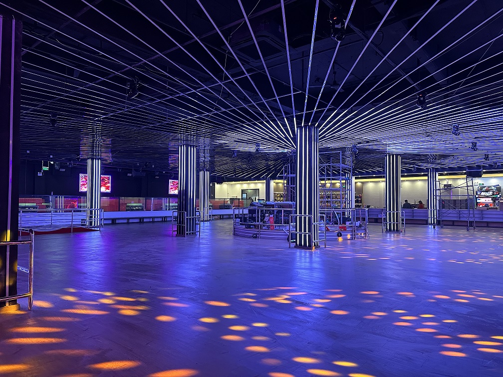 The decoration design of Xinghe Hui Pulley Music Bar in Yangchun City incorporates rich fashionable colors, highlighting the love of young people for colorful vitality of the world. Experience your favorite pulley sport in a relaxed environment. In addition to sports, it combines the entertainment hobbies of modern young people and is equipped with various entertainment and gaming facilities, providing sports enthusiasts with a homey experience.
