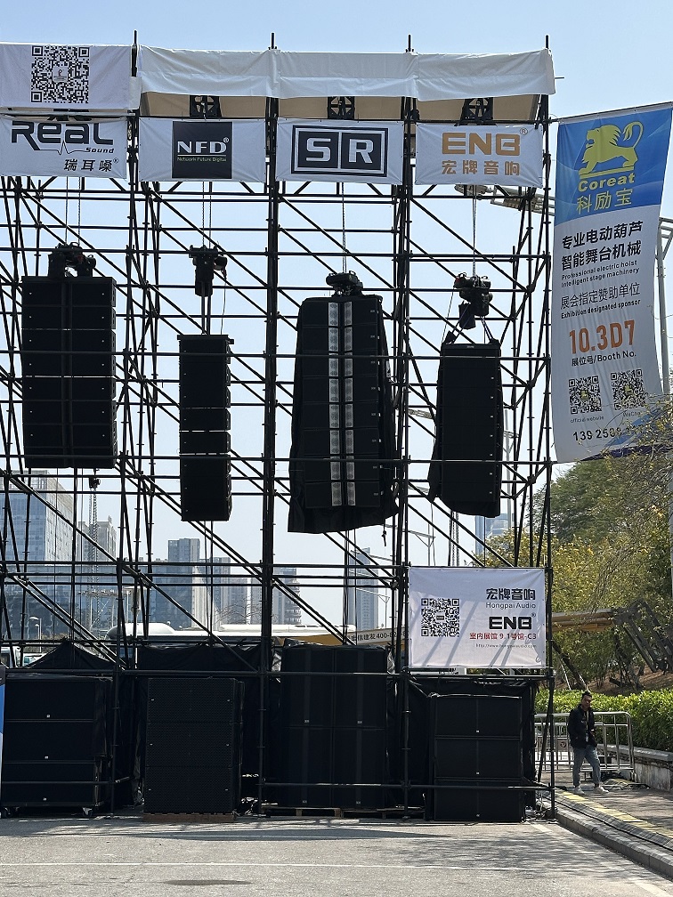 During the demonstration of the outdoor array, Ruijian Acoustics International won unanimous recognition from the on-site audience with its highly penetrating SR linear array high-quality sound system and strong technical strength. The sound of SR can drive the on-site audience to dance involuntarily, bringing a shocking auditory experience to the audience. This is the unique charm of SR, which has become the focus of attention at the exhibition.